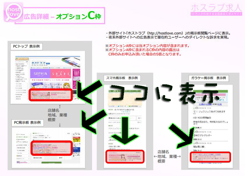 「ホスト-お店別」「キャバクラ/クラブ-お店別」「風俗-お店別」の「オプションC枠」を表示する際に