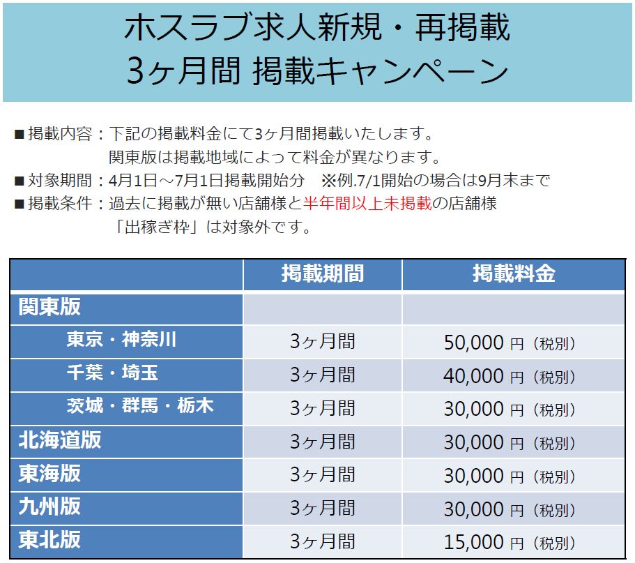 「ホスラブ求人 関東版」 におきまして
