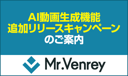 【Mr.Venrey】AI動画生成機能の追加とリリースキャンペーンのご案内Mr.Venreyより、AI動画生成機能リリースのお知らせです。 概要■AI動画生成機能Mr.Venreyシステム内で、一般的なAIサービスでは制限されることが多い「アダルト画像の動画化」が可能になりました。店舗様のプロモーションやコンテンツ制作において、差別化を図ることができます。 〇対象Mr.Venrey 風俗版/エステ版/カンパイ版/女性風俗版 &n...
