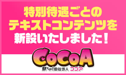 【ココア】特別待遇ごとのテキストコンテンツを新設についてココアより、特別待遇ごとのテキストコンテンツを新設のお知らせです。 概要 ■特別待遇ごとのテキストコンテンツを新設について ━━━事前のお知らせ━━━ 特別待遇ごとのテキストコンテンツが新設されます。 ━━━━━━━━━━━━━ 特別待遇ページのSEO強化・反響UP施策として、 弊社...