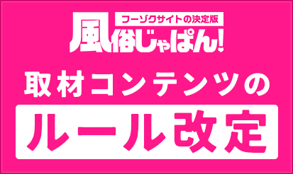 【風俗じゃぱん】取材コンテンツのルール改定風俗じゃぱんより、取材コンテンツのルール改定のお知らせです。 取材サービス ルール改定 <ルール改定1> ■運用開始 2024年3月4日(月)お申し込み分~ ■対象コンテンツ じゃぱん取材チームが撮影する全取材コンテンツ ■改定内容 撮影される在籍女性が実年齢【18歳・19歳・20歳】の場合、 顔写真付きの身分証原本を取材スタッフに...
