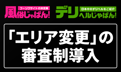 【風俗じゃぱん・デリヘルじゃぱん】「エリア変更」の審査制導入日本最大級の老舗風俗情報サイト「風俗じゃぱん」「デリヘルじゃぱん」より、「エリア変更」審査制導入に関するご案内となります! 「エリア変更」の審査制導入 概要 ■実施契約月 :2023年7月お申込み分~ ■対象媒体 :風俗じゃぱん、デリヘルじゃぱん ■対象業種 &n...
