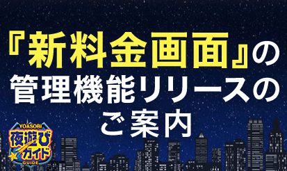 【夜遊びガイド】『(新)料金画面』の管理機能リリースのご案内♪割引などのサービスは東海1!地域密着型の風俗・ヘルス・デリヘルなら「夜遊びガイド」より、『(新)料金画面』の管理機能リリースのご案内です! 概要 2023年9月4日(月)に現在の「料金」機能を廃止し、『(新)料金』機能へ切り替えとなりました! ■リリース日 2023年7月26日(水) ※管理画面トップページにもご案内を掲載開始しております。 ■リリースに...