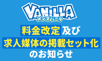 【メンズバニラ】料金改定及び求人媒体の掲載セット化のお知らせ掲載店舗数はナイトワークサイトでは最大!バニラ同様に宣伝カーを走らせ知名度ナンバー1!! 「メンズバニラ」にて、重要なお知らせになります! 料金改定及び求人媒体の掲載セット化のお知らせ メンズバニラの「料金改定及び求人媒体の掲載セット化」が決定しましたので、お知らせいたします。 料金改定&e...