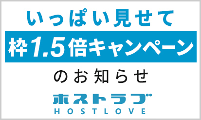 【ホストラブ】「いっぱい見せて枠1.5倍キャンペーン」のお知らせ。月間240万人が利用する夜の掲示板サイト「ホストラブ」より、いっぱい見せて枠1.5倍キャンペーンのお知らせです。 概要 この度、「ホストラブ」は、「いっぱい見せて枠1.5倍キャンペーン」のキャンペーンの実施が決定いたしましたのでご報告いたします。 ■キャンペーン名 いっぱい見せて枠1.5倍キャンペーン &...