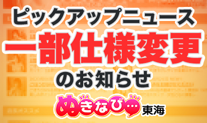 【ぬきなび東海】ピックアップニュース一部仕様変更のお知らせ愛知・岐阜・三重・静岡の風俗を探すなら!コンテンツが充実しており、行きたいお店がすぐ見つかる、ぬきなび東海より、ピックアップニュース一部仕様変更のお知らせになります。 新機能について この度、ピックアップニュースにおいて、一部の仕様が変更となりましたのでお知らせいたします! ■内容 これまで、お店トップに全文表示できるニュースは、公開中の先頭6件から選択できる仕様でしたが、...