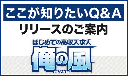 【俺の風】「ここが知りたいQ&A」リリースのご案内未経験歓迎や学歴不問で稼げるお仕事情報満載!高収入求人サイト!「俺の風」より「ここが知りたいQ&A」リリースのご案内です♪ 概要 この度、「俺の風」にて店舗管理画面のメニュー「ここが知りたいQ&A」よりご登録が可能となりましたのでご案内です! ※有料掲載店舗様のみご利用が可能です。 ■Q&Aカテゴリー 応募について 給与・待遇...