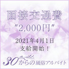 【30からの風俗アルバイト】4月1日より、面接交通費「2,000円」支給とな...大人の女性向け風俗求人やアルバイト情報が満載の「30からの風俗アルバイト」より、面接交通費(2,000円)の支給開始のお知らせです♪ 概要 現在、30からの風俗アルバイトから応募し、体験入店されたユーザー(女の子)には1店舗様につき1回入店祝い金の支給があります。 入店祝い金とは別に2021年4月1日より"面接交通費2,000円"の支給を開始することとなりました! &nbs...