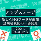 【アップステージ】新規NGワードの追加、掲載企業名表記ルールの一部変更。男の稼げる求人情報が満載の「アップステージ」より、新規NGワードの追加と掲載企業名表記ルールの一部変更のお知らせです。 追加ワード 媒体として広告展開での安全性を高めるため、新しくNGワードを追加設定することとなりました。 上記に伴い、掲載企業名表記のルールも一部変更となります。 詳細 アップステージへ掲載する際のNGワードに、下記文言が追加されます。 ...
