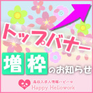 【ハッピーハローワーク】 トップバナー増枠のお知らせ「体入特集」「大人女子特集」「人気お仕事ランキング」「お仕事別求人ランキング」など、女の子の目を引くコンテンツが、すべて無料!!都内はもちろん、地方でも「エリア 風俗 求人」「エリア 風俗 高収入」等のワードでSEO上位を維持している、「ハッピーハローワーク」より、トップバナー増枠のお知らせです!! 概要 2021年5月有料課金分より「トップバナー(各エリア&全域)」が増枠とな...