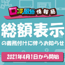 【口コミ風俗情報局】 「総額表示の義務付け」に伴うお知らせ全国の風俗、デリヘルの口コミ掲載数NO.1の口コミ風俗情報局より、「総額表示の義務付け」に伴うお知らせです!! 概要 2021年4月1日より、サービス料金を「税込価格」表記とする総額表示が義務付けとなります。 総額表示の措置に伴い、料金システムの変更が必要な店舗様はお申し込みの代理店様より変更手続きのご連絡をお願い致します。 また、店舗管理画面内にも同様お知らせをしておりま...