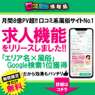 【口コミ風俗情報局】 『求人掲載機能』実装のお知らせ♪月間8億PV超え!! 口コミ系風俗サイトNo.1の「口コミ風俗情報局」より、『求人掲載機能』実装のお知らせです!! 今までは「特上プレミアムコース」限定で求人機能がございましたが、より機能が充実した「求人掲載機能」が実装になりました。 実装に伴い、期間限定のキャンペーンも開催しておりますので是非ご確認ください。 「求人掲載機能」実装 4月12日(月)より、「求人掲載機能」実...