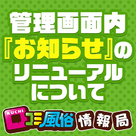 【口コミ風俗情報局】 管理画面リニューアルのお知らせ♪全国の風俗、デリヘルの口コミ掲載数NO.1の「口コミ風俗情報局」より管理画面内『お知らせ』のリニューアルについて! 概要 直近のお知らせだけではなく、 過去に発表した内容もご確認いただくことが可能となりました。 ■お知らせ内容 ▼『お得なキャンペーン』 ▼『新機能リリース』 ...