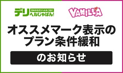 【デリヘルじゃぱん・バニラ】オススメマーク表示のプラン条件緩和デリヘルじゃぱん、バニラより、オススメマーク表示のプラン条件緩和のお知らせです。 概要 この度デリヘルじゃぱんでは「オススメアイコン」の表示条件が変更となりました。 <実施日> 2025年10月21日(火) <実施内容> ▼デリヘルじゃぱんサイト内各所におけるオススメマーク表示のプラン条件緩和  ...
