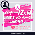 【ハッピーハローワーク】 『バナー12ヵ月掲載キャンペーン』のお知らせこだわり・待遇などから働きたいお店をピンポイントで検索できる機能や、急募情報、求人マンガ、ランキング、コラム等、 女の子が楽しくお店探しをできるコンテンツが豊富な「ハッピーハローワーク」より、「バナー12ヵ月掲載キャンペーン」のお知らせです!! キャンペーン概要 2021年2月有料掲載分より、「フルパックプラン・メインバナー・トップバナー・ライトバナー」のプランを対象に、 ...
