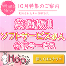【HOP!!】 業種版「ソフトサービス求人」のご案内&10月特集のお知らせ♪風俗未経験の女性向けに見やすい・分かりやすいが特徴の女の子の為の高収入アルバイト求人情報サイト「HOP!!」より、業種版「ソフトサービス求人」付帯サービスのご案内と10月特集のお知らせです!! 業種版「ソフトサービス求人」付帯サービス 全国版をお申込みする事で、業種版「ソフトサービス求人」へのご掲載が付帯サービスとなります。 お申込み期間:無期限 対象業...