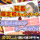 【R-30関東版】 ”限定枠CP延長”になりました!! 併せて”再掲載のCPルール...人妻熟女系風俗店を多数掲載している高収入求人サイト「R-30関東版」より、"限定枠CP延長"のお知らせです!! 併せて"再掲載のCPルール変更"&"先行掲載開始日の変更"のお知らせです!! ①限定枠キャンペーン延長 [VIPプラン・注目のお仕事プラン]に限り、有料掲載することで3ヵ月間ご掲載できる"限定枠キャンペーン"が開催されました!! 以前有料掲載実績のある再掲載の店舗様...