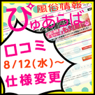 【ぴゅあらば】8月12(水)14時より!「口コミコンテンツ」仕様変更のお...諭吉を持ってお店にGo!大人気!一万円で遊べるお店! 毎週月曜更新!どこよりもお得で利用可能な、業界最安値はキラーコンテンツ! そんな、ぴゅあらば より、口コミ仕様変更のお知らせです。 概要 ぴゅあらばの口コミ投稿といえば、他のユーザーがお店選びに欠かせないコンテンツになりますが、下記日程で仕様変更がありますので、ご確認ください。リピーター様や本指名のお客様のたくさんの投稿も評価点アップに...
