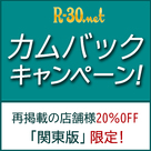 【R-30関東版】カムバックキャンペーンのお知らせ!人妻熟女系風俗店を多数掲載している高収入求人サイトR-30(関東版)より、お得なカムバックキャンペーンを開催致します。 併せて7月ご掲載分に限り、先行掲載が前倒しとなります。 キャンペーン概要 2020年4月または、5月有料掲載落ちになった店舗様に限り、 2020年7月に再掲載の場合、掲載料金20%OFFでご掲載可能なカムバックキャンペーンを開催となります。 ...
