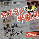 【イクリスト】新規・プラン変更・再掲載の区切り無し!Sプラン半額キャ...