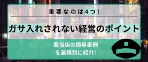 ▼風俗店の摘発事例とガサ入れされないお店を経営するポイントは、次の記事で詳しく解説しています。